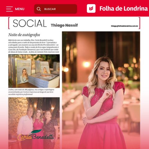 No começo de janeiro deste ano, o lançamento do meu livro foi pauta na coluna social de Thiago Nassif, da Folha de Londrina.