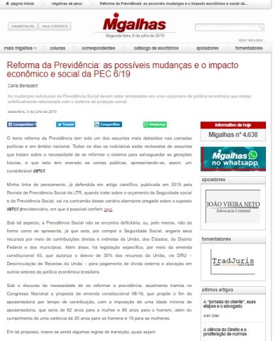 Migalhas | Reforma da Previdência: as possíveis mudanças e o impacto econômico e social da PEC 6/19