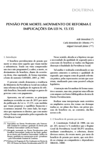 Pensão por morte: movimento de reforma e implicações da lei n. 13.135